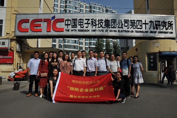 8月14日至16日,自动化学院组织我校师生一行21人前往哈尔滨开展“国防企业面对面”专项实践活动。实践团队由自动化学院院长姜斌教授带队,院党委副书记张跃、校生涯发展教育中心主任、就业创业指导服务中心就业指导部部长沈雪萍以及学院各年级辅导员共10名老师和来自能源与动力学院、自动化学院、机电学院、材料科学与技术学院的10名学生代表参加了活动。团队一行先后走访调研了中国电子科技集团第49研究所、中航工业哈尔滨飞机工业集团有限责任公司、中国航发哈尔滨轴承有限公司、航天海鹰(哈尔滨)钛业有限公司、中国航发哈尔滨东安发动机有限公司等五家国防单位。
