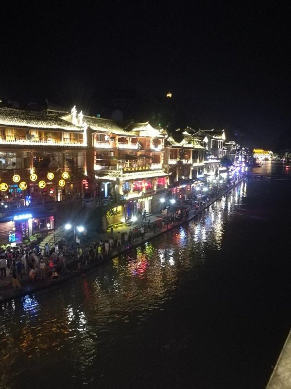 之后几天,队员们开始走访古城。凤凰古城的整体建筑风格偏向于民族化,大部分民居都保留了民族特色,比如吊脚楼,马头墙等。在街区,都是青石板路面,沱江穿过整个街区,将一片繁华一分为二,江面每隔一段距离就有古式的桥横跨,亦或是一段曲曲折折不宽不窄两人并肩宽的竹桥。在江岸的小铺子商家并不都诚恳,相同的物品在不同的商家那里,价格确实参差不齐,在其他的商品上也是如此,古风古韵的民族特色古城,其华丽的外表下,同样有着很多令人诟病的市场行为。