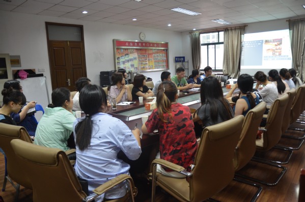 张贤德同学用ppt把自己在官微新闻编辑工作中总结得出的宝贵经验献出共享,从标题,内容以及图片等编辑要点一一解说展示,为各位宣传员上了精彩的一课。他也为后勤各位宣传员们推荐了好用的编辑器,以及各种微信编辑的小技巧。此外,张同学现场为大家展示了一篇新闻的排版编辑流程,分步解说,宣传员们都一一认真记录,发言提问,认真学习微信新闻的编辑方法。