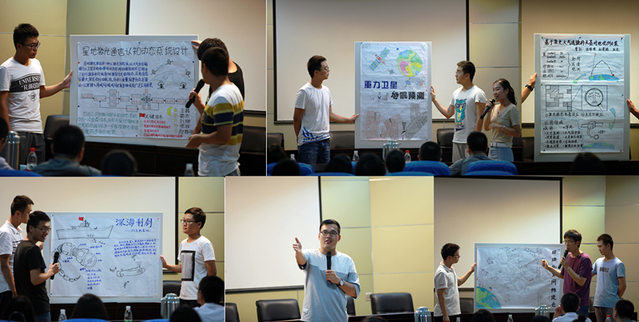 最终有37支队伍参赛,全体参赛队伍均按照创新课题进行团队内部组织讨论,并以手绘海报的形式呈现小组的创意设计并进行汇报。在初赛中,有8组团队脱颖而出并进入复赛。在研究生创新设计复赛评比现场,8组团队进行限时讲解并回答评委提问,最终评选出深海利剑-仿生机器蛇,基于蜂窝结构的微纳卫星组网系统,基于激光大气透镜的天基对地观测,n×N PLAN 基于卫星编队组网的目标侦查与跟踪4组为此次创意设计大赛的优秀成果,4组团队成员18名学员全部被评选为暑期学校优秀学员。