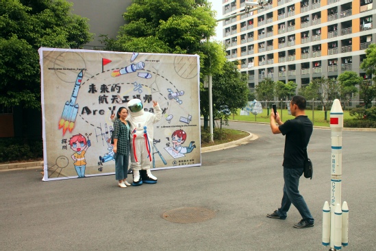 航天学院在报到点演示“坎巴拉太空计划”,“飞行模拟”等软件,利用航模遥控器模拟操作软件,通过投影仪投影,让新生亲身体验火箭的组装,发射,入轨等真实场景。