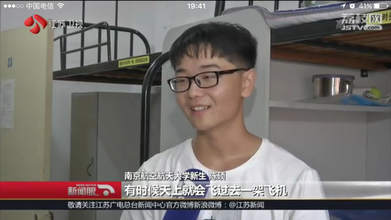 机务工程专业一位新生同样让众人啧啧称奇。他就是来自重庆的15岁新生张其霖。因为外婆是小学老师,他比同龄人更早接受教育。2岁识字,4岁进入小学,9岁初中,12岁便顺利升入高中。高考更是以588分的骄人成绩被南航录取,超一本线96分。