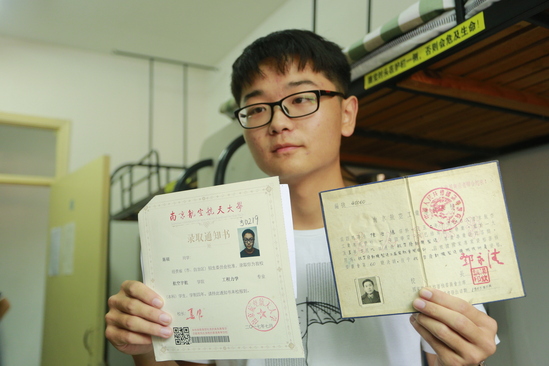 工程力学专业新生陈硕带着一张爷爷的毕业证前来报到,引起了在场师生的关注。陈硕的大爷爷陈生德是南航第一届学生,读的是航空发动机制造专业。更巧的是,陈硕的堂哥陈提也就读于南航,是航空宇航学院的博士,于2006年考入南航,目前已赴加拿大攻读约克大学的博士后,延续他的“航空梦”。一家三人跨越半个多世纪的航空梦和南航缘,真是让人感慨不已。