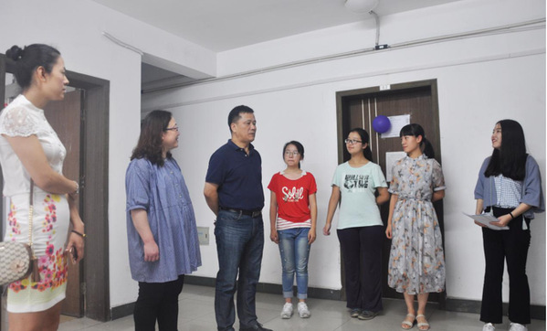有关专业学习,范院长强调“课堂学习大部分集中于教材,而我们外语专业所需要的远远不止这些,不同于高中学习,大学学习更需要注重独立学习,不仅要读专业书,也要读‘杂’书,以此提高自己的思想高度。”在整个走访过程中,领导们耐心地回答新生和家长每个问题,和蔼亲切的态度感染着每一位新生,寝室里洋溢着浓浓的师生情谊。
