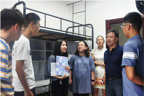 院长一行前往女生宿舍,对初次出远门和初次住校的新生,给予了更多的关心,一方面让家长放心,学校学院拥有很高的软硬件设施;一方面叮嘱学生们要独立,学会适应,在学习之余也要锻炼自己的综合素质,如加入一些社团组织。既要好好利用学校创造的良好外部条件,又要通过自身学习和实践积累有利内部条件。