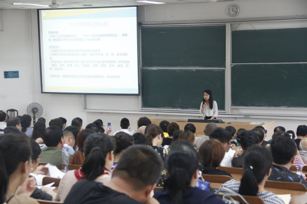 大会第二篇章是新生班主任见面会,各班主任在7号楼教室,分别召开了班会,老师们有的精心准备了幻灯片,有的组织大家依次自我介绍、轻松愉悦地交流。这是同学们在班集体中第一次和新的伙伴们互相认识,开始建立起师生、同学间的情谊。
