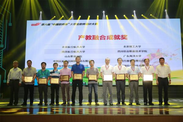 会上,倪光南院士为本届大赛寄语,他指出软件产业的未来需要当代年轻人承担更多使命与责任,希望大赛为中国软件业的产教学研搭建更为广阔的发展平台。谢少锋、谢俐、谢志成分别致辞并共同启动第六届“中国软件杯”大学生软件设计大赛总决赛。之后,大赛组委会颁发了“最佳学校组织奖”、“产教融合成就奖”、“最佳地方组织奖”和“企业突出贡献奖”4个奖项。我校荣获本届大赛“最佳学校组织奖”和“产教融合成就奖”两个奖项。我校大学生艺术团学生在开幕大会上表演了系列精彩的节目,开幕式在优美的《软件之歌》中落下帷幕。
