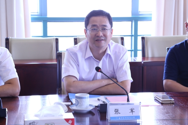 聂宏校长对张军书记一行的到来表示欢迎,并介绍了学校的发展历史、学科特色、人才培养、科研成果等,并希望双方通力合作、及早谋划,做到优势互补,实实在在做好校地共建。