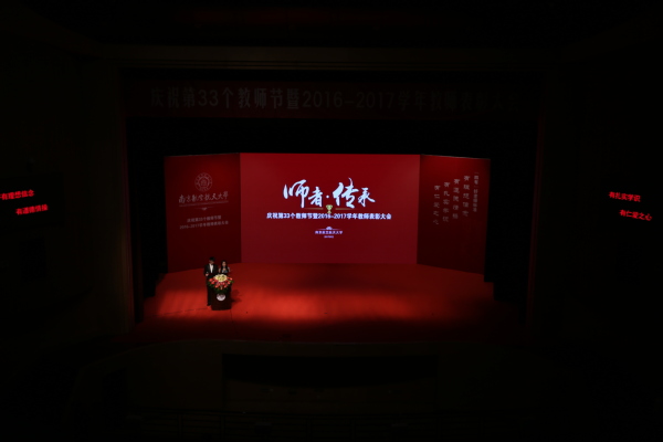 9月8日下午,我校“师者•传承”庆祝第33个教师节暨2016-2017学年教师表彰大会在明故宫校区大学生活动中心举行。全体校领导、校长助理,两院院士、国家级教学名师,获奖团队及个人,2016-2017学年退休及新入职教师,以及有关部门和学院负责人、师生代表参加大会。