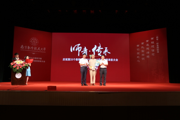 在教师代表和学生代表发言环节,国家级教学名师、航空宇航学院昂海松教授以“当一名教师的体会”为主题,阐述了大学教师的价值,从教师的“教书育人”职责、树人先立身、爱国主义教育以及个人工作经历等方面分享了自己从教的体会与感悟;教学与科研并重、电子信息工程学院潘时龙教授从确定对本科生有吸引力的研究方向,开设兼具趣味性与知识性的特色课程,建设科创平台、培养创新人才三个方面阐述了自己在探索科研服务于本科生的培养的心得;坚守一线、潜心科研的能源与动力学院谭慧俊教授讲述了自己的学习工作经历,从专注持续地在有限方向开展科学研究,基础、创新研究和工程应用研究相结合,团结、唯实的南航环境,人生价值服务于国家需求等方面与青年教师分享了科研的收获感悟。现场通过视频回顾了能源与动力学院徐川老师作为思想政治教育工作者,坚持思想育人、文化育人,用创新的教育方式和学生的话语体系让思政教育入心入脑,用更亲切的方式成为学生值得依靠和信赖的师者。学生代表经济与管理学院研究生王萌同学深情讲述陈其霆老师潜心育人、严谨治学、敬业爱生,对教师这个职业热爱和迷恋的故事,感动全场。