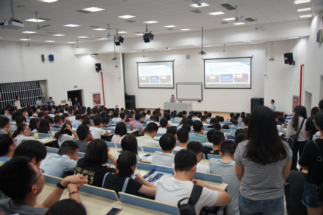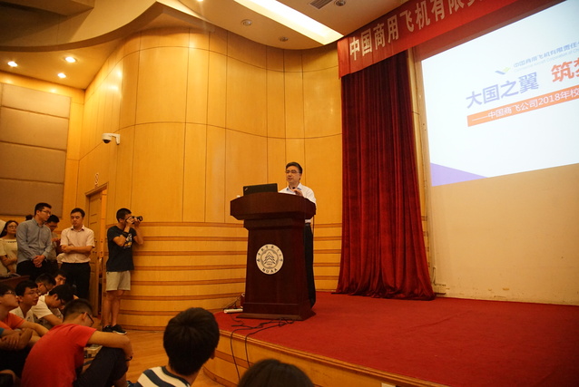 魏应彪作了题为“大国之翼,筑梦翱翔”的精彩演讲。演讲从“大国使命”开始,指出“大飞机梦”是“中国梦”的重要组成部分,是建设创新型国家的标志性工程,中国商用飞机公司必将努力为中国的大飞机梦插上翅膀。他还为大家详细介绍了商飞总部和6个中心的具体情况,并展示了商飞研制的3款重点飞机。最后,他强调中国商用飞机公司愿意广纳英才,加强人才基地建设,为广大优秀毕业生提供优良的工作生活环境,希望大家加盟商飞。