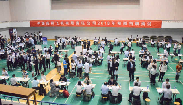 9月8日全天,中国商飞总部及各中心在我校明故宫体育馆进行了现场面试,本次招聘有近150个岗位需求,涵盖我校大部分专业。