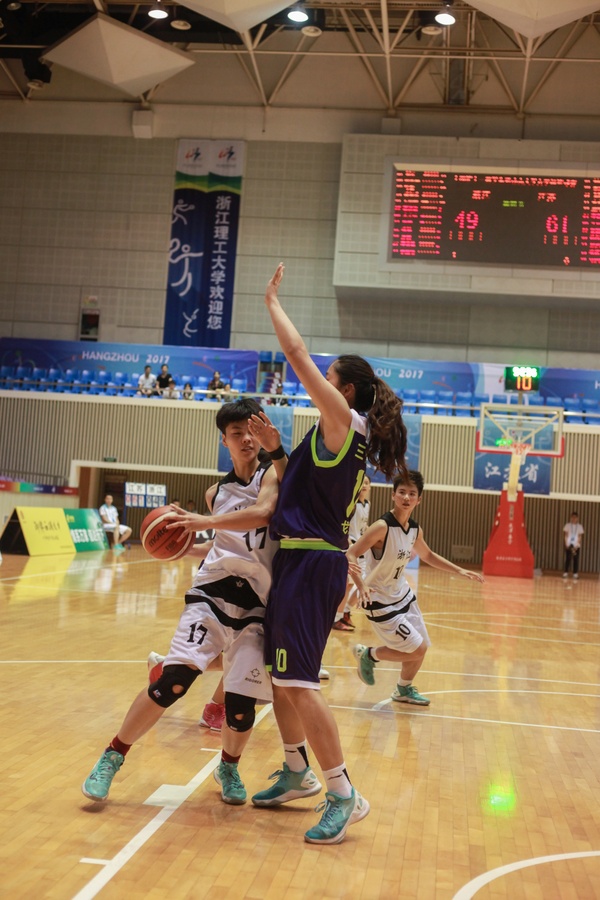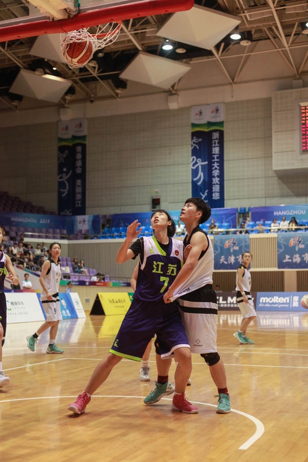在跟上海队的比赛中,我校女篮队员刘叶、赵雨琪、戈铮雨三人作为主力队员率先出场,比赛一开始就进入白热状态,比分交替上升,而上海队在强力中锋的带领下内外线全开,一度落后6分,中场结束时上海队31:30以一分的优势领先。第三节一开始江苏女篮加大了防守强度和进攻速度,通过积极拼抢每球必争和精准的投篮命中率在第三节中打出一个22:11的高潮。