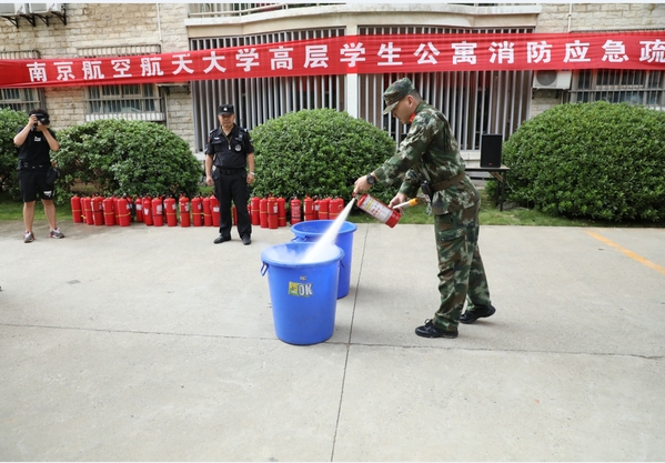 2017年9月12日下午,由4774名南航大一新生参加的高层公寓消防应急疏散演练在一阵急促的警报声中拉开了序幕。演练模拟住在高层公寓的学生因使用违章电器引发火灾,两幢高层公寓楼内的2000多位新生在安保人员的引导下用湿毛巾或衣物捂住口鼻有序撤离“火场”。整个过程真实还原了火灾现场,为新生们上了一堂生动的消防安全课。