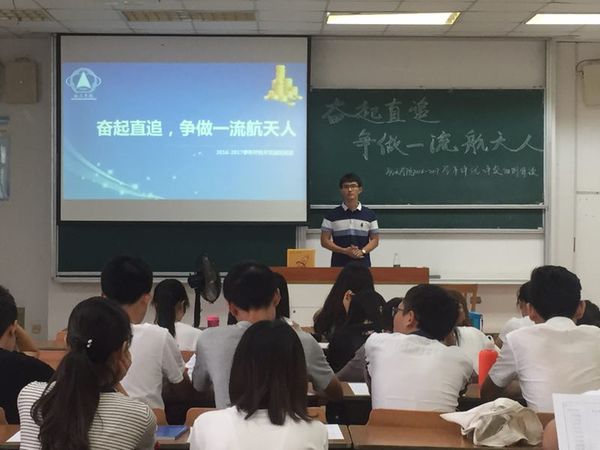 9月22日,航天学院在将军路校区举行主题为“奋起直追,争做一流航天人”的2016级年级大会,辅导员、2016级全体学生参加。