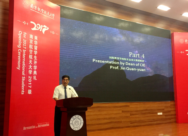 开学典礼在庄严的校歌声中开始,国际教育学院院长金泉元在致辞中希望留学生尽快适应在中国、在南航的学习和生活,走出校园,了解真实的中国社会、人民和文化;学会自律,遵守中国的法规法规和校纪校规;不忘初心认真学习,全面提升自己,勇于担当。