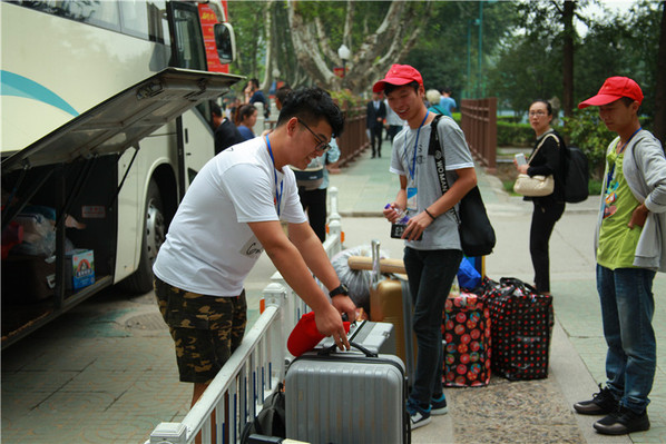 今年参与迎新志愿者近280人,志愿者从2号开始准备迎新工作,氛围营造、会场布置、整理教材等。9号清晨,志愿者们在学校门口迎接新生,在校园的各个路口耐心回答新生和家长的问题,引导新生前往注册中心报到。