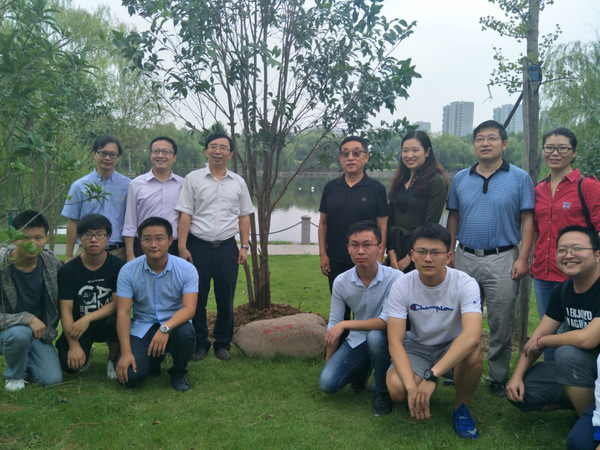 会后,柴天佑院士前往院士林为其于2011年手植的桂花树培土浇水,并在 “问天鼎”合影留念。