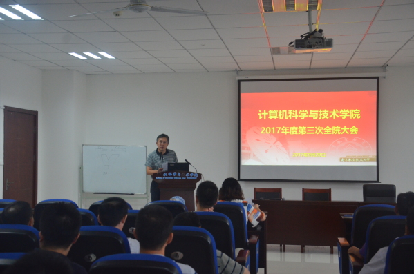 9月20日,计算机科学与技术学院召开全院大会,学习传达校党委全委(扩大)会议精神,通报前阶段工作开展情况,部署新学期各项工作。院长陈兵主持会议。