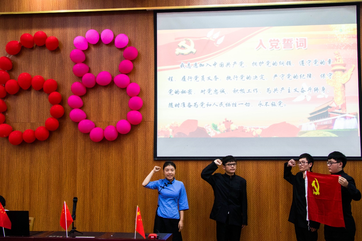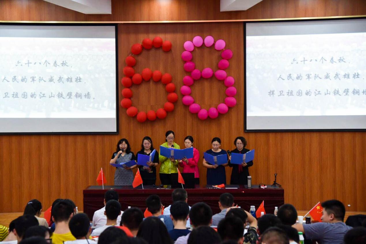 学子竞风采的同时,马克思主义学院马克思主义中国化教研部的老师们也奉上了精彩的朗诵节目:“历史的耳畔,传来了礼炮的隆隆回响,那排山倒海般的回响,是中国沧桑巨变的回响。”老师们的诗朗诵充满感情,情绪激昂,让台下所有的同学热血沸腾。