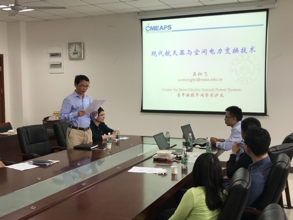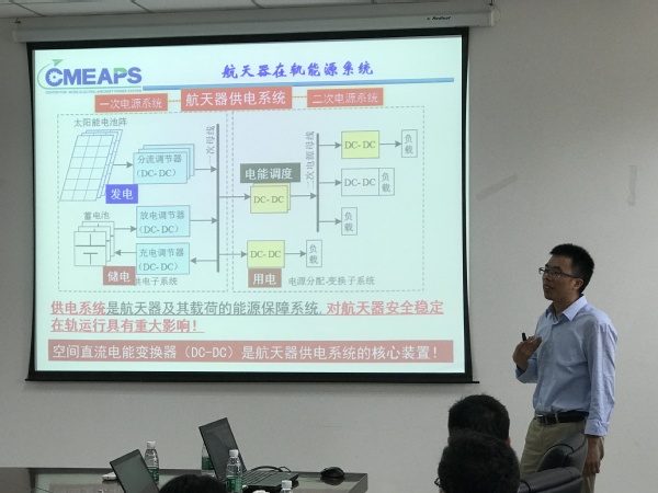 吴红飞副教授做了题为《现代航天器及空间电力变换技术》的报告。他结合自己的研究成果,深入浅出地介绍了航空航天供电系统和空间电力变换技术的相关背景以及发展情况,并结合自己团队的工作成果向与会老师介绍了当前遇到的主要难题,以及主要的解决思路,为大家深入了解我国航天器的电力瓶颈技术问题,以及高可靠性、高能效、轻量化和小型化的航天电力变换系统实现带来巨大挑战有了明确的认识。