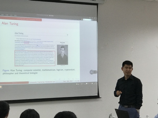 刘哲教授做了题为《密码工程:简介与实例》的报告。他详细的解读了密码的原始产生、发展过程、发展阶段,以及目前形势等内容,并将深奥的密码与浪漫的情书、关键的情报等相结合进行介绍,让大家对密码算法的软件实现及其优化的角度有了深刻的理解和认知,并对未来物联网的侧信道攻击与防御方法等有了更深的体会。