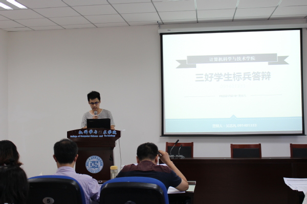 10月9日下午,计算机科学与技术学院在学院楼113报告厅举行2016-2017学年本科生评优评奖公开答辩评审会。学院党委副书记王霄,班主任代表高航、谢强等6位老师,各年级辅导员,参评各类奖项的优秀学生以及近百名观摩学生共同参加了此次公开答辩评审会。