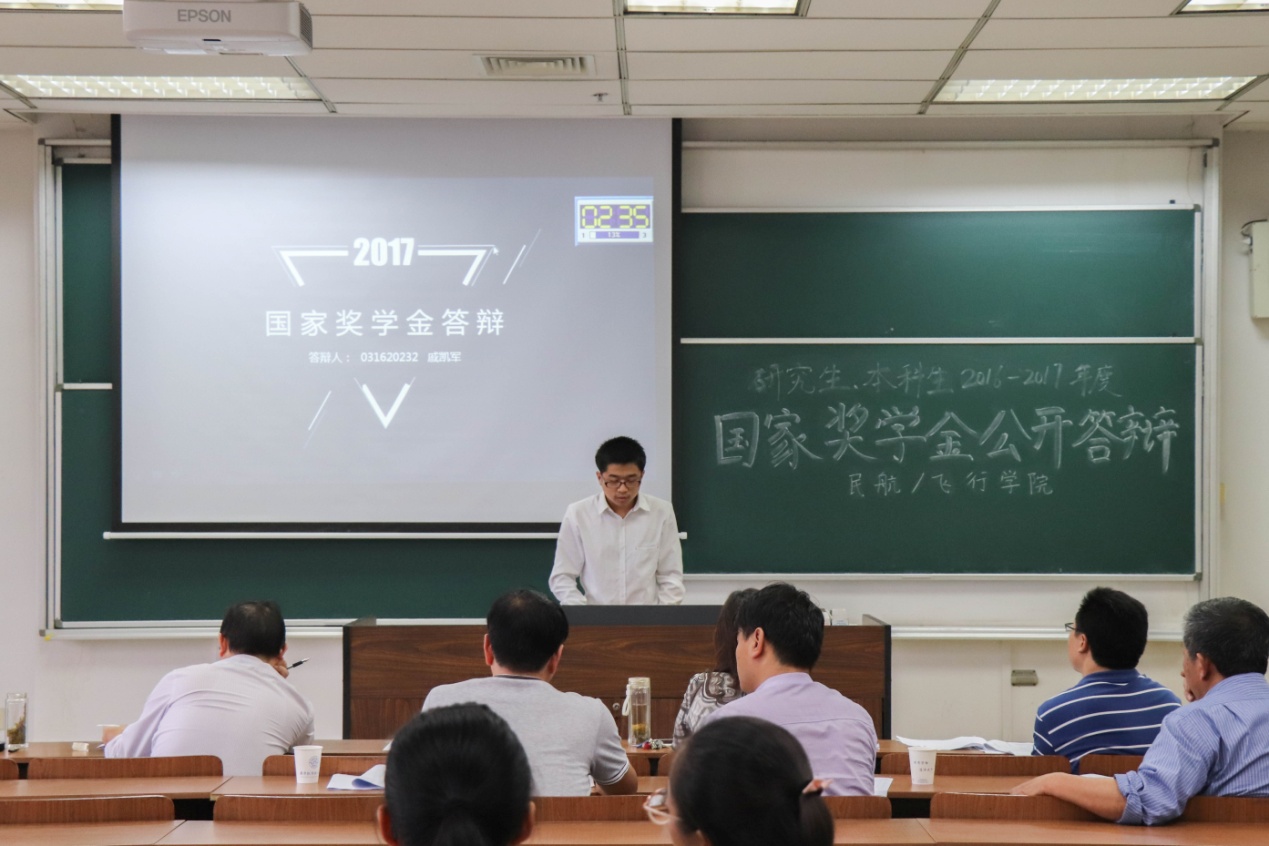 10月10日下午,民航/飞行2016-2017年度国家奖学金院级公开答辩评审会在10205教室举行。本次答辩评审团由学院副院长葛红娟教授、空管系张洪海教授、运输系系主任吴薇薇副教授、乐美龙教授、工程系陈果教授以及飞行系司海青教授共六人组成。来自各年级各专业40余名优秀学生参与了本次公开答辩。