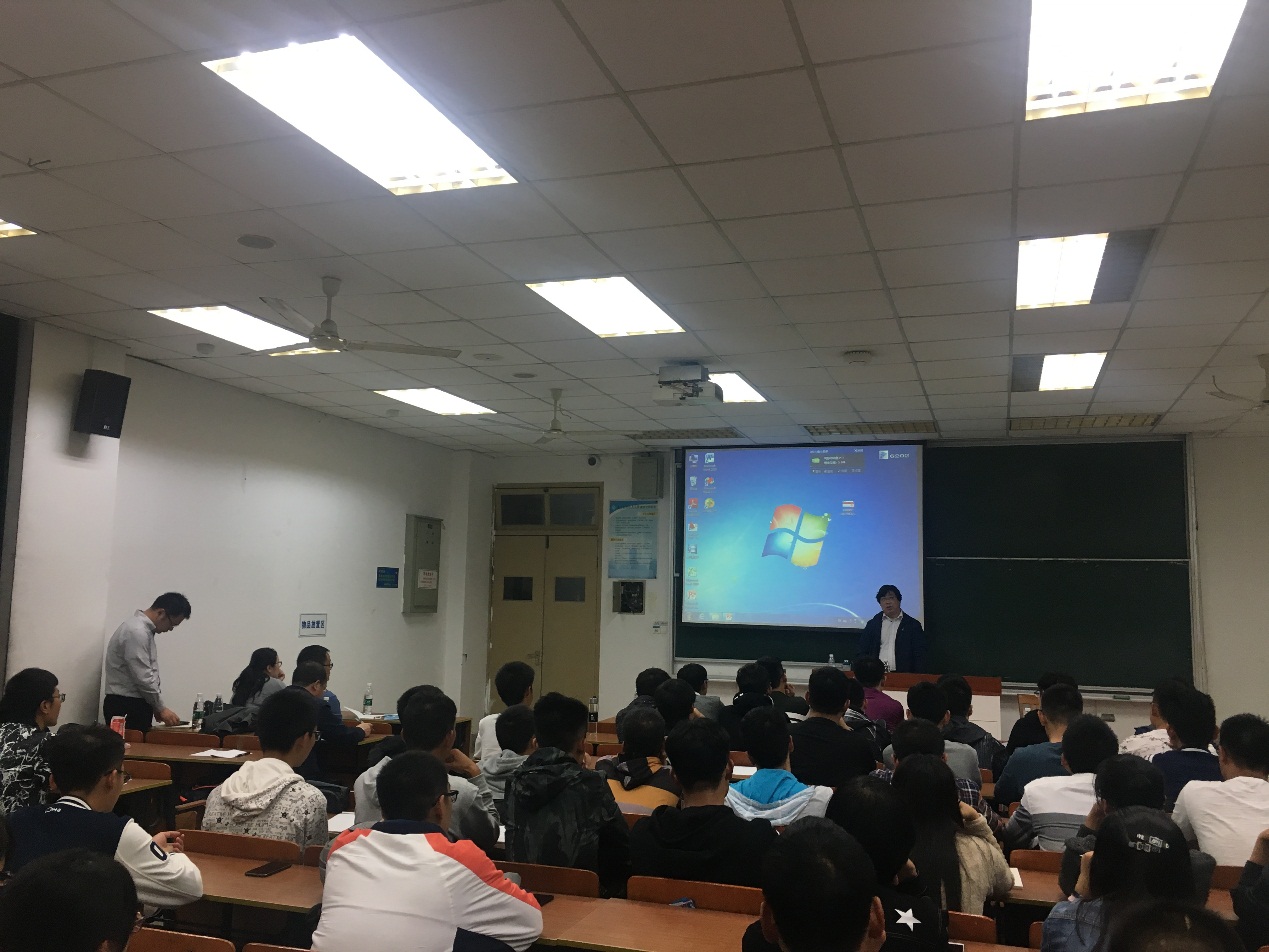 接着,高存法向新生介绍了胡自力、樊牧、尚岩、师岩这四位优秀的青年助教,四位助教也都各自向同学们分享经验、提出寄语。樊牧、尚岩提出,学习不能放松,学生应主动和其联系;胡自力、师岩更是分享自己大学时代的经历,胡自力心系“不要被电脑玩弄,而要支配电脑”这个观念,最终征服编程;师岩每天坚持花一个多小时专注于数学分析,最终拿到满分。听完四位助教的分享,同学们纷纷表示赞同,高存法也向同学们指出:应以这几位助教为标杆,从学习上、思想上向其看齐。之后,为让两个班新生更好的了解工程力学,高存法简单的介绍了学院与力学的基本情况。