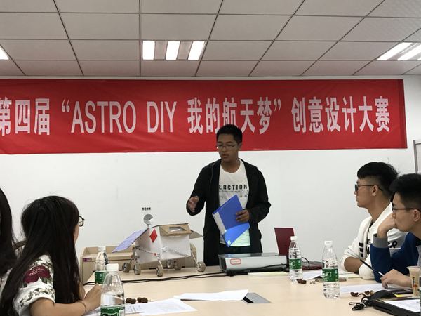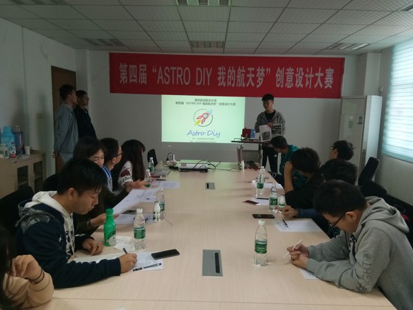 10月14、15日,由航天学院承办的南京航空航天大学第四届“Astro-DIY我的航天梦”创意设计大赛初审在学工楼210顺利进行。来自各个学院的近百组参赛队伍携带作品到场参与答辩,初赛由航天学院各年级辅导员、团学骨干以及学生代表担任评委。