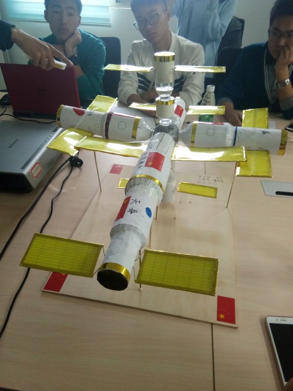 在答辩环节中,参赛团队针对作品的设计理念、创作过程、工作原理等进行了详细讲述。同学们利用生活中的废旧物品,如矿泉水瓶,易拉罐等,制作出了许多奇思妙想的创意模型,空间站、探测车、火箭、机器人等各种各样的航天飞行器也都在初赛中亮相,虽然这些概念早已提出并应用,但同学们在已有的基础上融合了自己的创意,改变了航天器的固有形态以及相应功能。评委们也针对答辩同学的陈述从对设计理念的构思的、实物模型的展示等方面进行了细致的提问,并给予了客观全面的建议和评价。