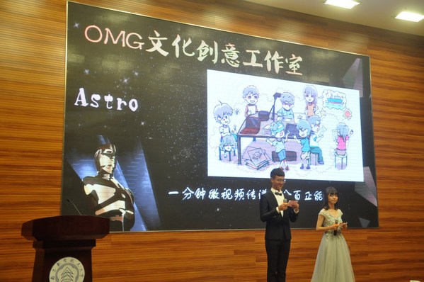 首先,OMG文化创意工作室获得了今晚首项大奖“最佳明星团队”,凭借优秀的作画,出色的创意,流畅的剪辑,OMG文化创意工作室将自己“一分钟”的品牌传出了校园,打进了央视,用画笔书写社会主义核心价值观,用视频展现当今生活的魅力,最佳明星团队当之无愧。