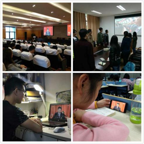 今天上午,各学院学生通过多种方式,在学院报告厅、教室、实验室和宿舍等地通过电视、电脑、手机等多种途径认真观看十九大开幕会直播。