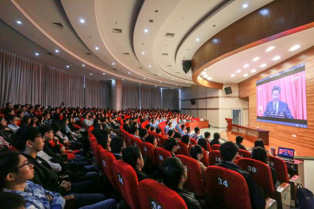 10月18日上午9点,举世瞩目的中国共产党第十九次全国代表大会在北京人民大会堂隆重开幕。我校学生党员代表和全体学生工作人员在将军路校区一号楼四楼报告厅集中观看了党的十九大开幕会现场直播,认真听取了习近平总书记代表十八届中央委员会作的工作报告。