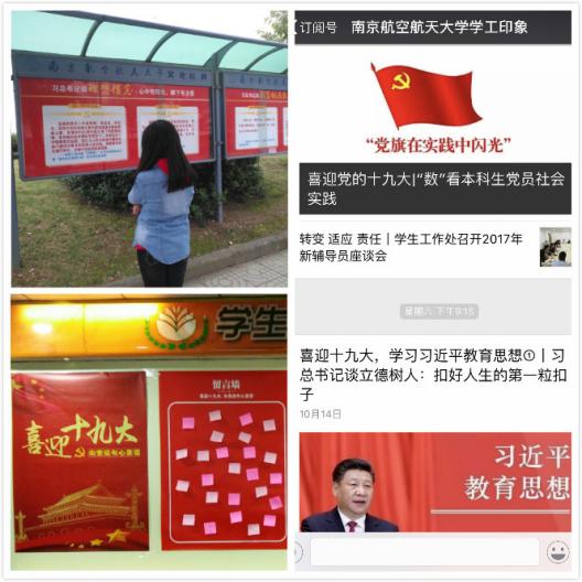 据悉,为迎接党的十九大胜利召开,党委学生工作部前期已面向学院发布了做好形势政策教育的有关通知,要求各学院根据实际情况,指导学生开展喜迎十九大活动,并结合“党员先锋计划”,充分发挥学生党员模范带头作用,在学生中掀起关注党代会、热议党代会的热潮。在校园氛围营造方面,党委学生工作部在线上发布“喜迎十九大”系列网络推送,同时,在线下布置以习总书记对教育工作的重要论述为主要内容的文化长廊,于将军路校区学工楼学生事务服务中心设置“喜迎十九大,向党说句心里话”学生留言墙,供学生表达心声。