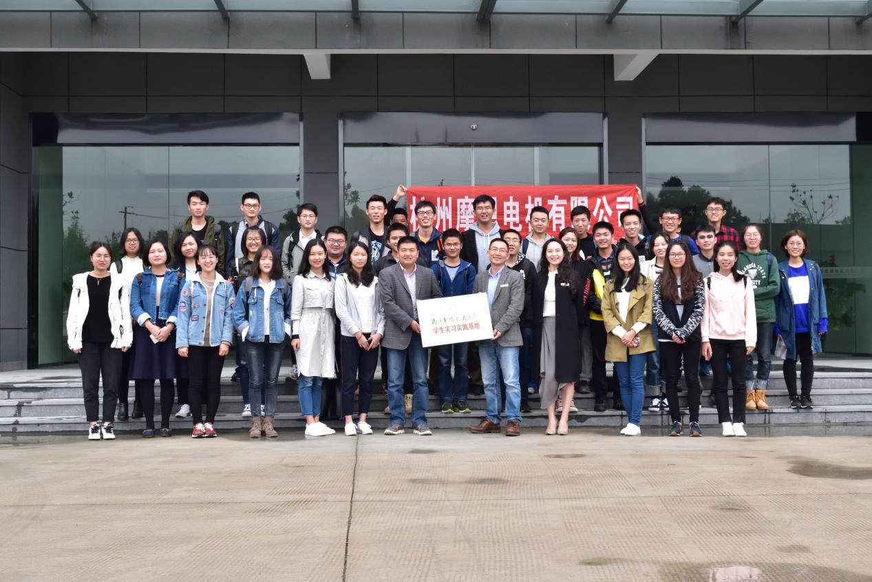 在杭州摩恩电机有限公司,张老师就实习实践基地建设、人才培养合作等方面与摩恩电机公司进行了深入讨论和交流,与公司签订了实习基地协议,并举行了“南京航空航天大学学生实习实践基地”授牌仪式。摩恩电机公司总经理周建华通过讲座的形式与同学们分享了他对我国电机产业发展现状和未来趋势的思考;然后系统介绍了摩恩电机的发展历程,以及如何在工作中寻求科学高效的工作方法,鼓励同学们爱岗敬业、大胆创新、追求卓越。讲座引起了同学们的热烈反响,大家就创新创业、找工作、企业管理等与周经理和摩恩电机公司团队进行了深入的交流,周经理耐心解答了同学们提出的问题,讲座在全场师生的热烈掌声中落下帷幕。然后,在公司员工的带领下,同学们参观了摩恩电机有限公司生产线,并就电机设计、生产等相关问题与员工进行了交流和学习。