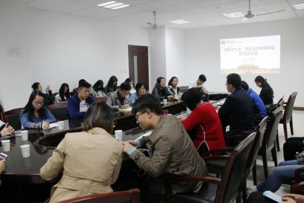 10月18日下午,在中国共产党第十九次全国代表大会盛大召开之际,人文学院、马克思主义学院在学院楼召开题为“喜迎十九大共议法治中国建设”党员座谈会。人文学院院长王建文、党委副书记尹春苹、法律系老师贺富永、院党政办主任王晓庆、院团委书记卢一亭、本科生辅导员以及人文学院、马克思主义学院党员代表参与座谈,喜迎十九大,共议法治中国发展。