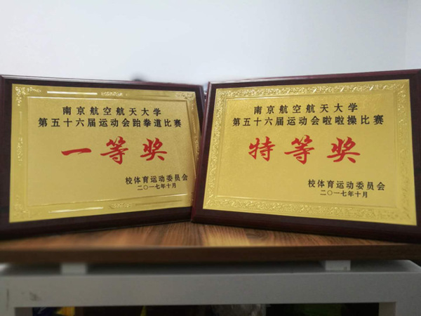在第56届运动会啦啦操和跆拳道比赛中,航天学子奋力争先,顽强拼搏,两项比赛分别取得特等奖以及一等奖,获得历史性最好成绩。在正式比赛前,航天学院啦啦操团队、跆拳道团队成员经历了为期十四天的认真训练。