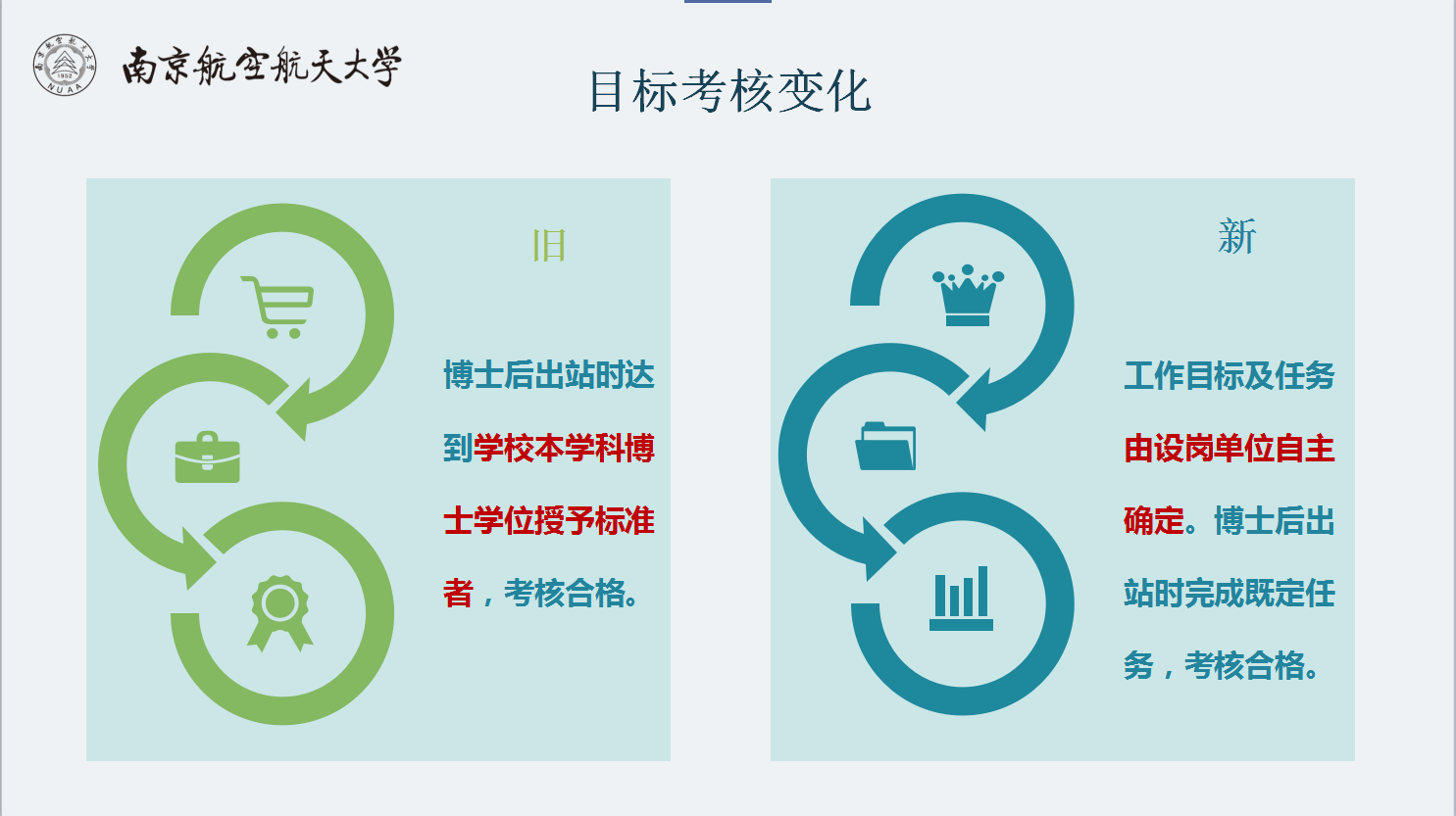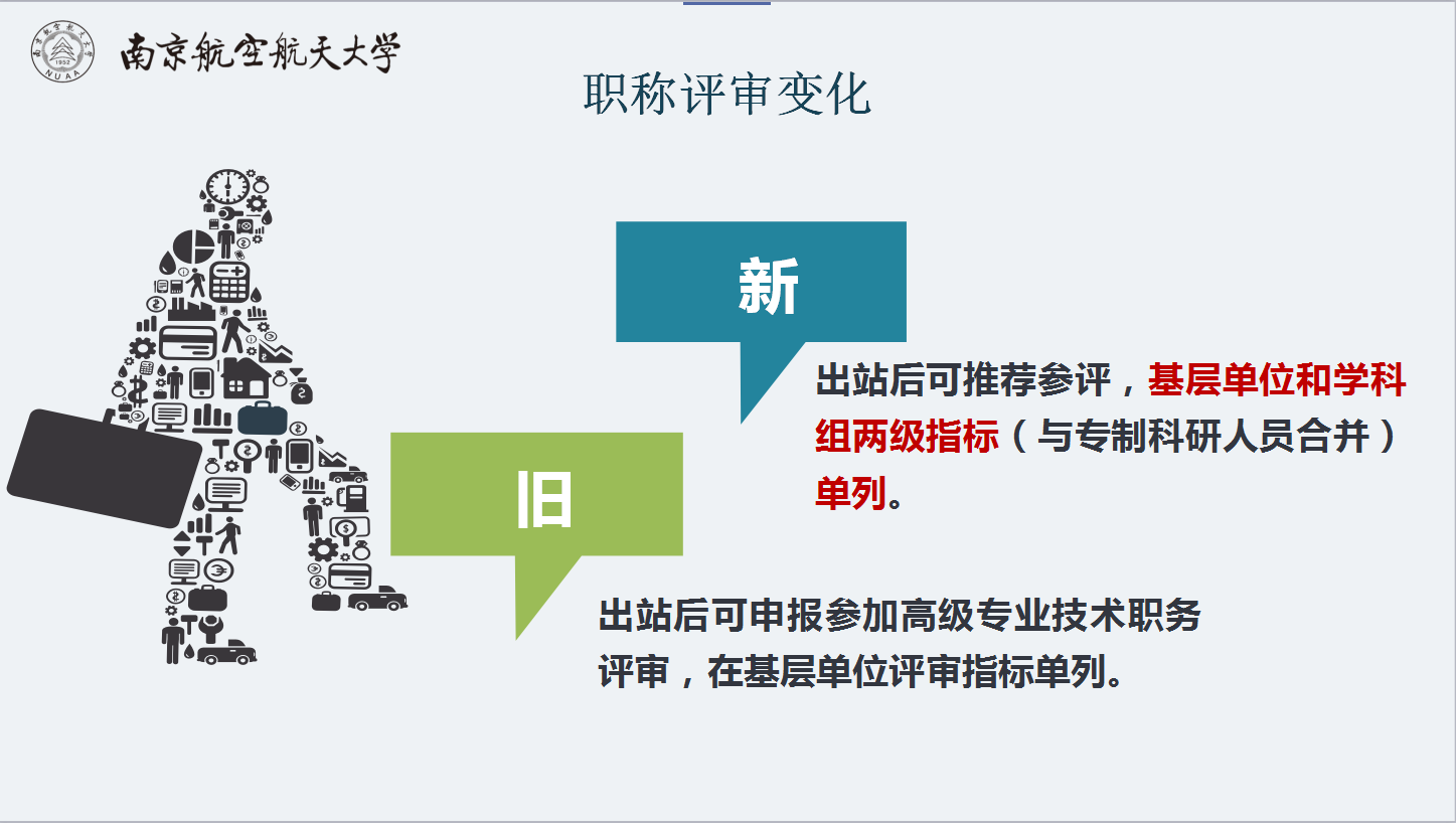 博士后队伍作为“科研生力军”和“人才蓄水池”,是我校师资补充的一个重要来源。为畅通博士后择优选留师资渠道,新政策明确提出优秀博士后可优先申报学校专任教师岗位或专职科研岗位,这将有力地吸引一批业绩突出、适应南航科研环境的青年人才加盟我校,为打造一流师资队伍添砖加瓦。