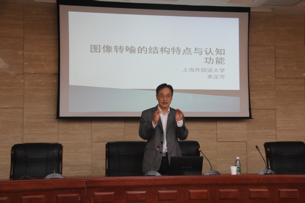 10月20日下午,上海外国语大学束定芳教授应邀在外国语学院做学术讲座,主题为“图像转喻之特征与功能”。讲座由外国语学院院长范祥涛教授主持,学院教师及研究生近100人聆听了讲座。