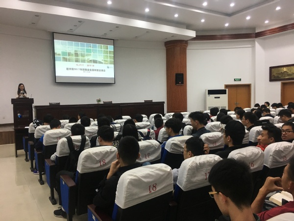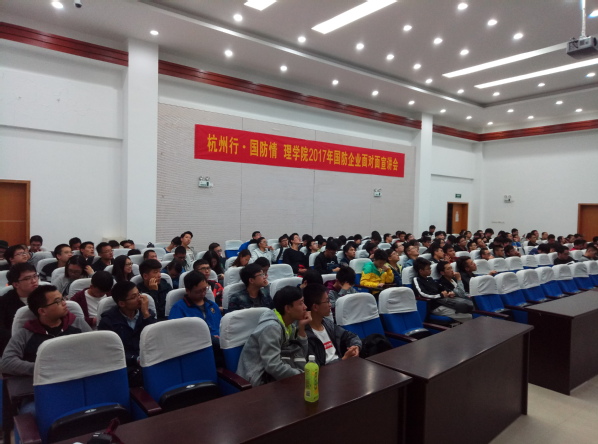 10月25日,“杭州行·国防情”理学院2017年国防企业面对面宣讲会在理学院报告厅举办。理学院党委副书记方正、校就业创业指导服务中心就业管理部部长王亚鹏、理学院团委书记欧珊、毕业班辅导员杨璐、2017级辅导员刘思佳到场参加,来自理学院近200名学生参加了此次交流会。