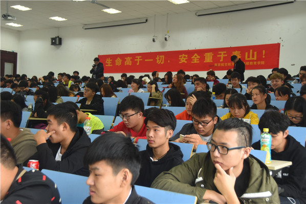 为增强学生的安全意识,提高学生的法律意识,营造平安、和谐、文明的校园育人环境,2017年10月17日,学院邀请南京市大光路派出所李春阳警官在明故宫校区13号楼报告厅为2017级新生举行了“校园安全法制教育”专题讲座。讲座由学院团委副书记谢绘主持。