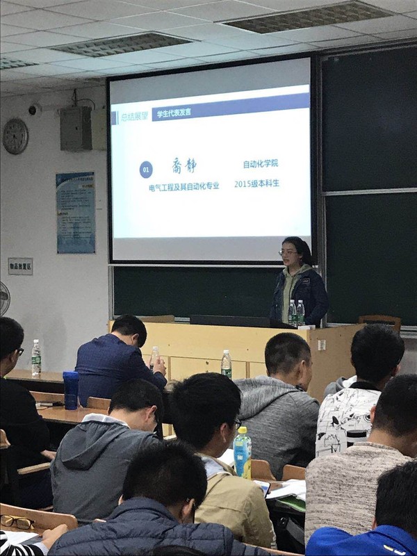 报告会上,此次国防企业面对面调研团的两名成员:来自自动化学院电气工程及其自动化专业2015级本科生裔静、能源与动力学院航空宇航推进理论与工程专业2018届研究生曹灿,分享了参与此次实践活动的感受,为现场同学们提供了许多学习方面的建议。裔静同学以“调研归来谈国防”为题,分享了本次活动对于专业学习、个人规划和拓宽视野方面的收获,鼓励同学们要大胆“走出去”,积极参与各项校企交流活动;曹灿同学以“学习与实践”为主题,鼓励同学们“多走顺风路”,提醒同学们要珍惜身边的教学资源,注重科研创新能力的培养,同时强调了自我规划的重要性,鼓励大家要确立自己的目标并为之奋斗。