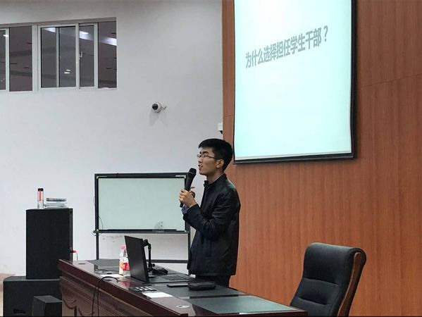 王洋以五个关键词“经历 坚持 发展 热爱 规划”切入主题,同时,也紧紧围绕着几个问题“为什么担任学生干部”“你想成为么样的人”展开深入分析,让同学们在聆听的过程中也能够积极思考反思。