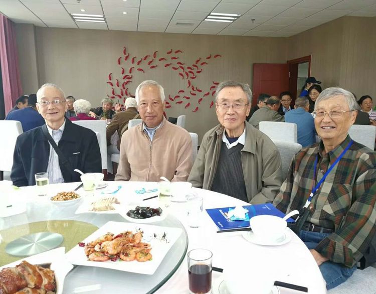 61年毕业的四位老师,今年都是80高龄,右边的奚抗生老师和周德安老师是计算机专业的首届毕业生!