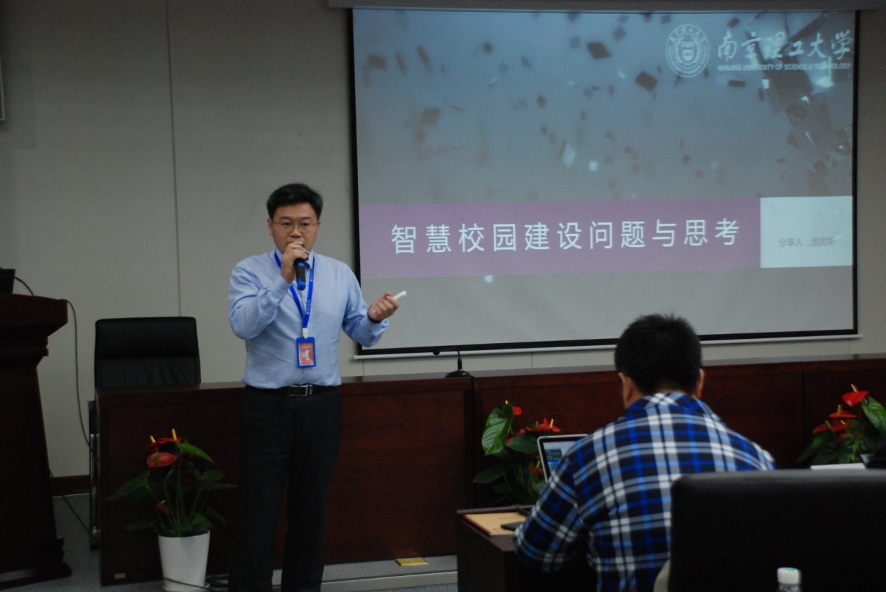 研讨会上,南京理工大学信息化建设与管理处处长涂庆华和北京理工大学网络信息技术中心副主任李凌分别做了《智慧校园建设问题与思考》和《混合云上的智慧校园》的专题报告,分享了两所高校在智慧校园建设方面的先进经验。江苏金智教育、新华三集团、江苏天技等IT企业的工程师也带来了精彩的案例讲解与智慧校园建设思路分享。会后,与会嘉宾参观了我校新启用的信息化技术中心。