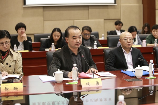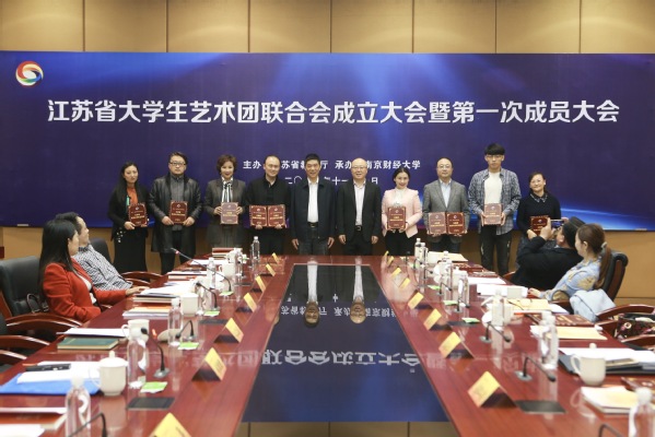 11月1日下午,江苏省大学生艺术团联合会成立大会暨第一次成员大会在南京财经大学仙林校区召开。大会由江苏省教育厅主办、南京财经大学承办。江苏省教育厅副厅长朱卫国出席会议并做出重要讲话。体卫艺处处长张鲤鲤、体卫艺处副调研员王红蕾,来自全省73个省级艺术团所在高校代表参加会议。我校党委副书记陶勇,艺指委秘书长、艺术教育中心主任杨莉莉参加会议。