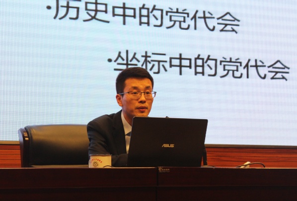 课上,徐川首先结合自己参加十九大的切身经历为同学们讲述了观测党代会的若干角度,并对青年团干部和团员如何关注党代会、如何学习十九大精神提出了建议,他希望团干部在学习宣传十九大精神和习近平新时代中国特色社会主义思想的过程中要结合实际,找准同学们的关注点和疑问点学懂弄通。他还讲述了自己参加记者招待会和BBC采访的经历,鼓励同学们要多学习、多积累,坚定理想信念,时刻维护祖国的利益和形象,为建设富强、民主、文明、和谐、美丽的社会主义现代化强国而努力奋斗。