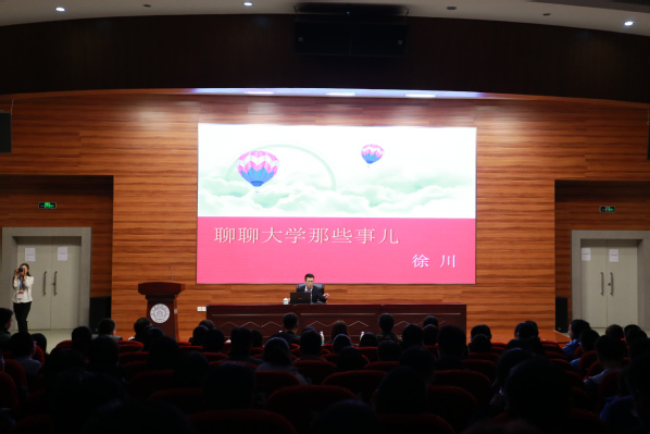 随后,他结合自己的大学经历,用幽默的语言向同学们讲述了“人在江湖、现实艰难、梦想美丽、百炼成钢、歧路风景、夙愿得偿、何去何从”七个青春故事,深受同学们喜爱,现场不断爆发出欢笑和掌声。在听故事之余,同学们也牢牢记住了徐川老师的寄语:接受自己、悦纳自己、认识自己、超越自己,记得给生命不断寻找突破口;仰望星空、脚踏实地,让优秀成为一种习惯;为信心寻找支点,为困顿寻找出口,培养从容豁达的心态;让自己变得更加成熟,勇于尝试、勇于挑战、勇于面对。