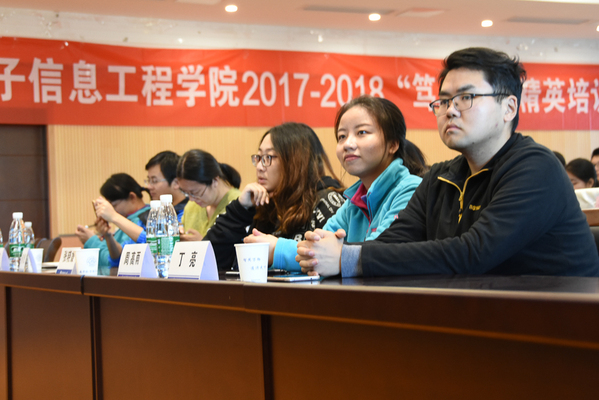11月4日下午4点,备受瞩目的电子信息工程学院2017-2018学年二级团校之“笃·信”精英培训营启动仪式暨第一次必修课于电子信息工程学院院楼515正式开幕。马克思主义学院副教授何畏老师,院团委书记徐艳惠老师,教务处袁李华老师,辅导员张晓媛老师,丁亮老师,周贞琪老师,周高雨老师莅临观礼。